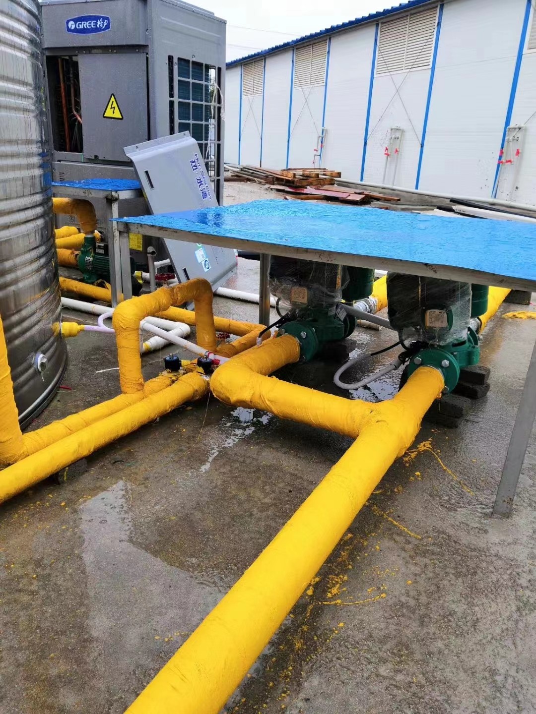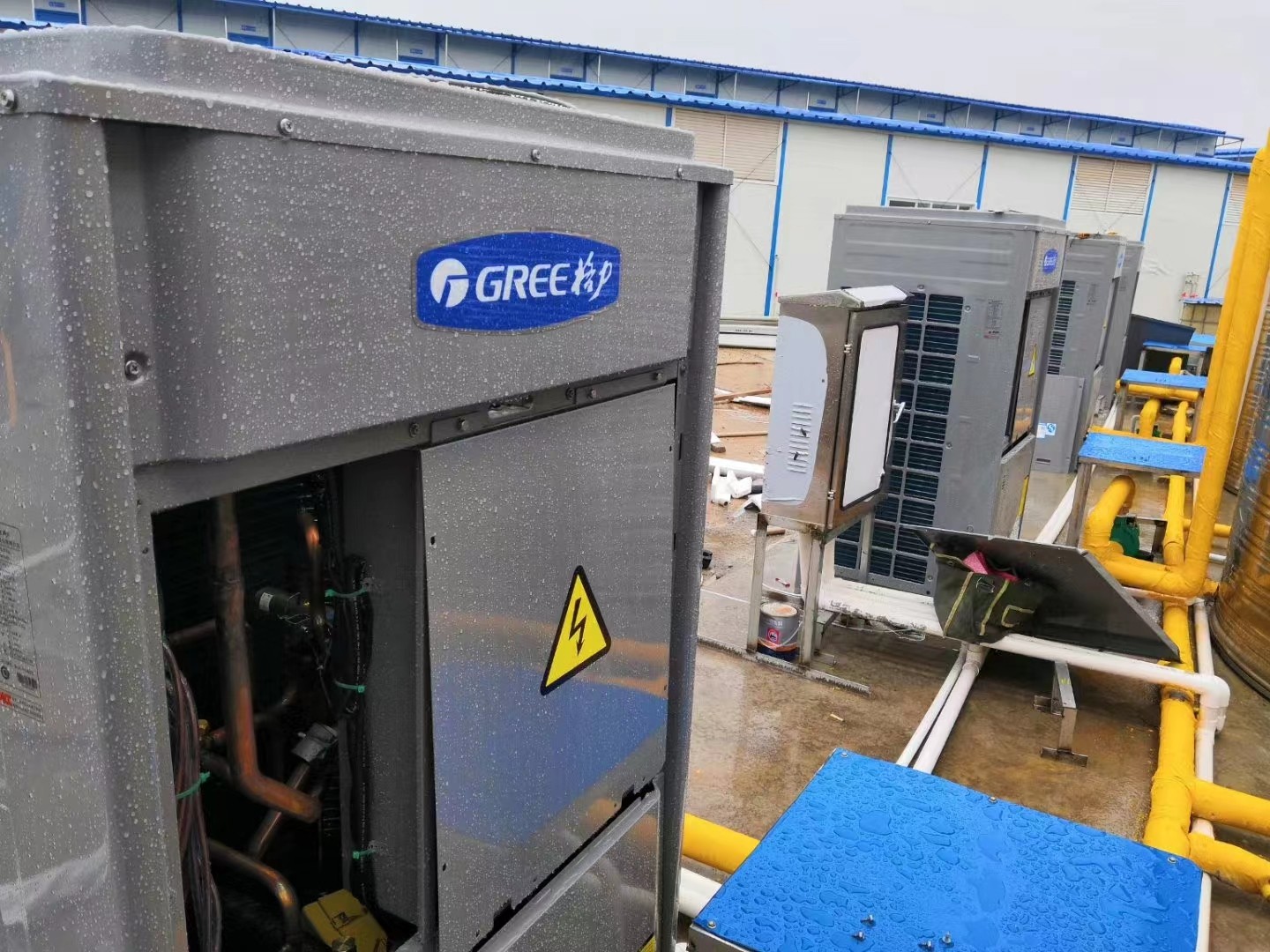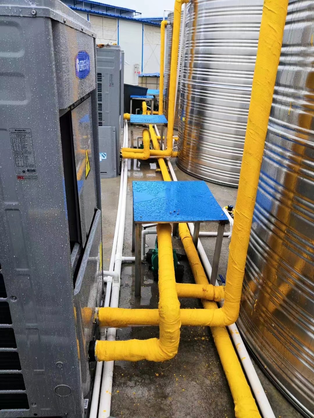 万达商业中心格力热水湾商用空气能热水器项目圆满完成测试,正式投入使用,
